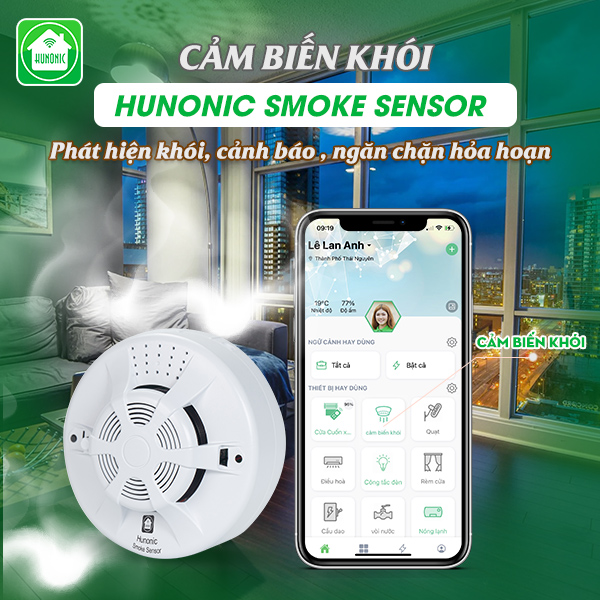 Hunonic Smoke Sensor có khả năng liên kết với các thiết bị thông minh khác của Hunonic để tự động hóa các hành động ứng phó: